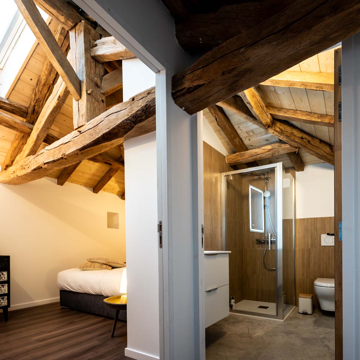Une opportunité nous a été donnée de rénover ce lieu chargé d’histoire. Nous nous sommes efforcés, avec l’aide de nos précieux amis et artisans de donner le meilleur de nous-même dans la rénovation et la transformation de cette ancienne ferme en logements. Et ce, en respectant et redonnant une nouvelle vie aux matériaux, mobiliers et décors.